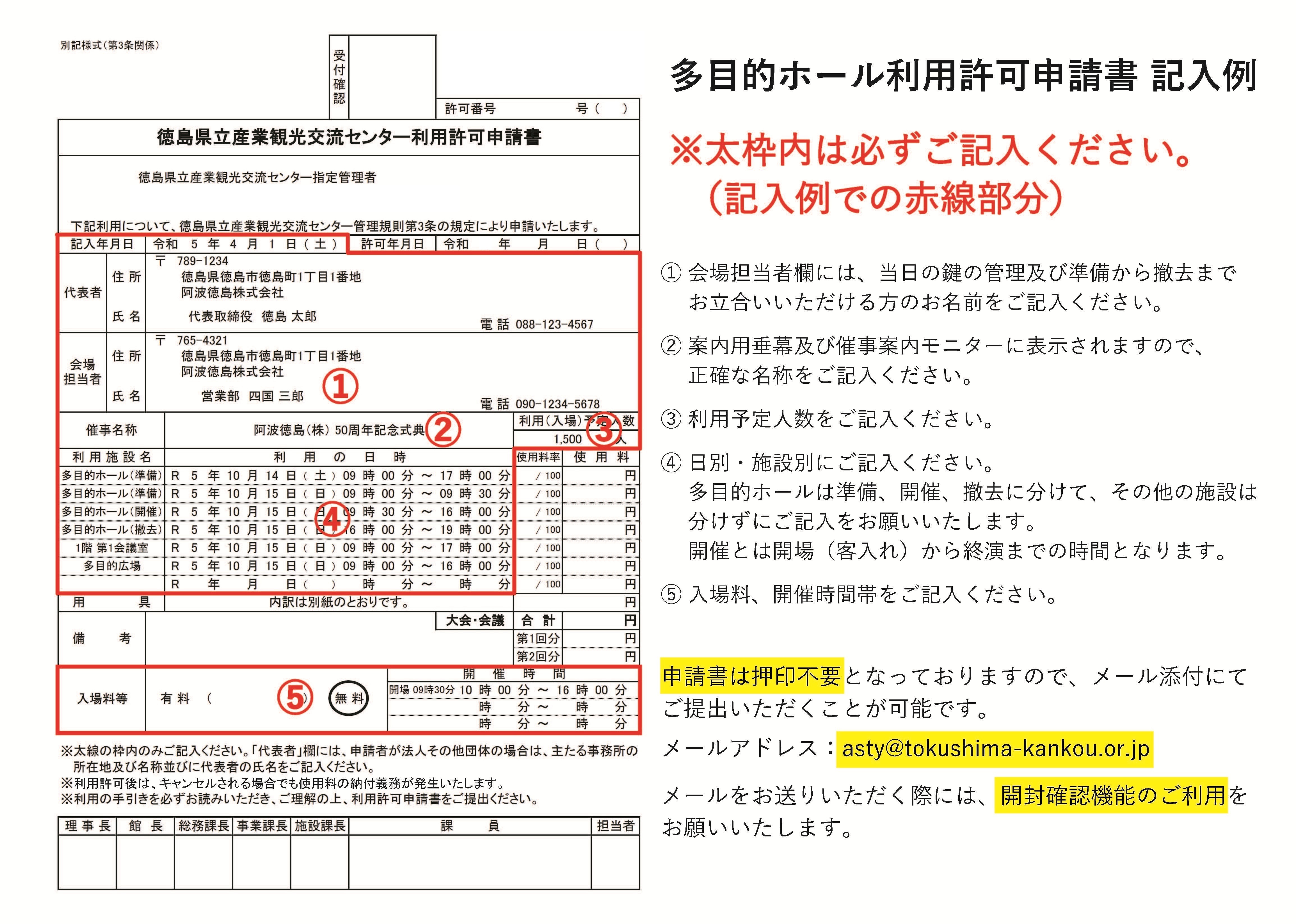 徳島東消防署へ届け出後、承認を受けた書類をアスティとくしまへご提出ください。 - 行政財産使用許可申請書